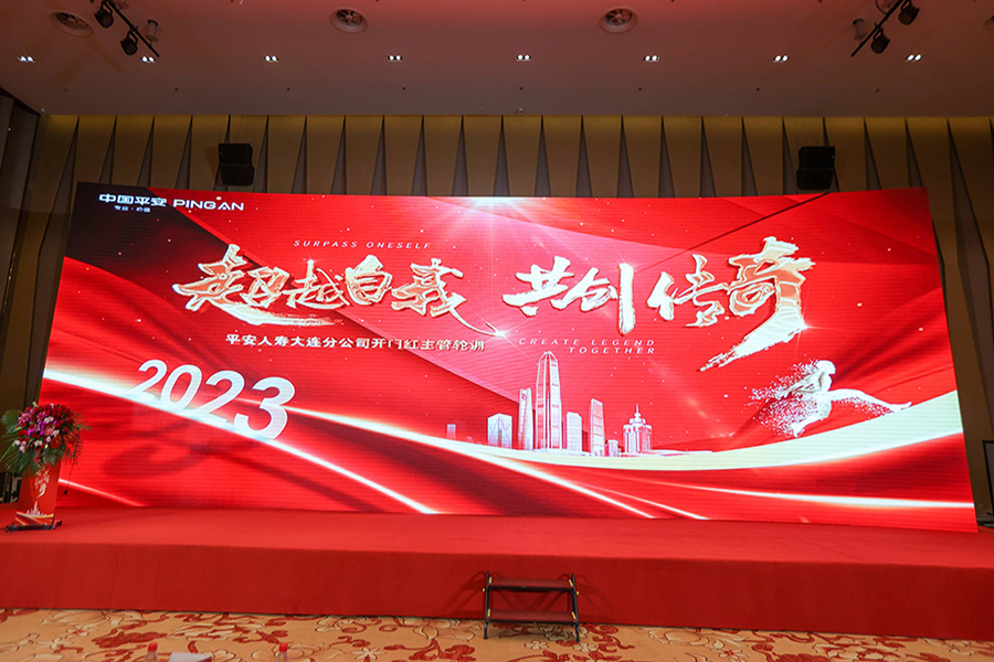 ? ? ? ??②主持人暖場,領導發(fā)言致辭,大屏幕播放公司本年度成就。