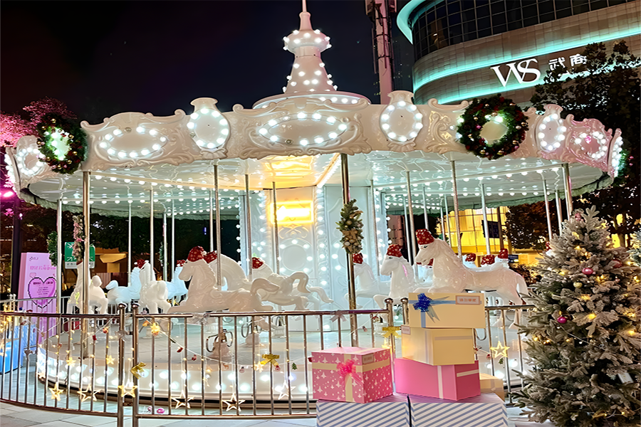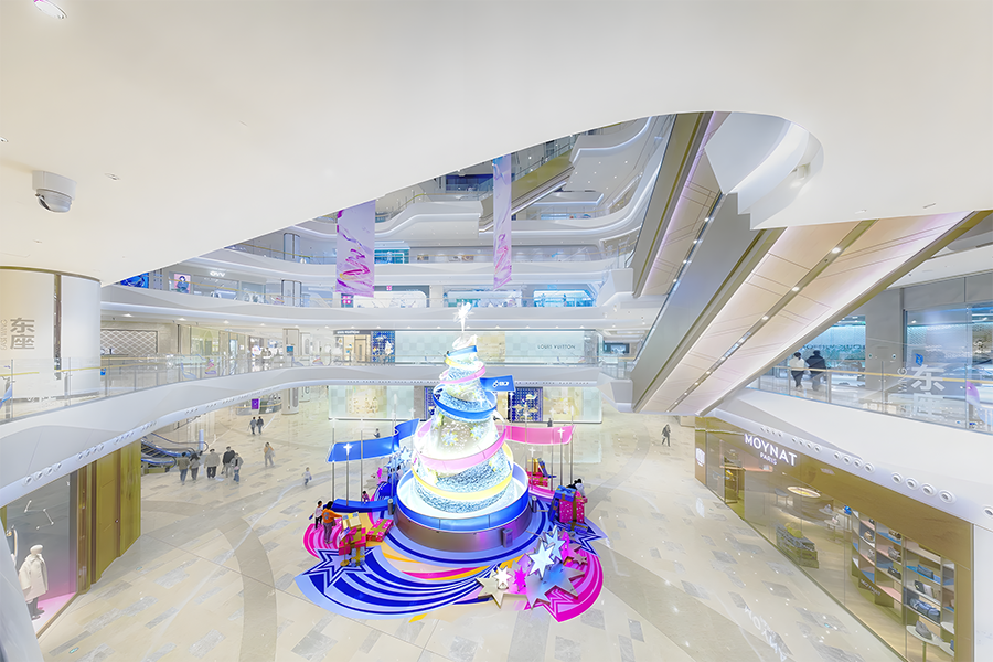 2024年,武漢恒隆廣場的圣誕樹裝置再次升級(jí),由發(fā)光彩帶、雪花和星星環(huán)繞而成,整個(gè)裝置絢麗而夢(mèng)幻,仿佛置身于童話世界之中。